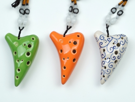 陶笛作為一種樂(lè)器,它采用了科學(xué)的材質(zhì)和結(jié)構(gòu)使聲音發(fā)揮到非常好的效果,每只陶笛都嚴(yán)格按照現(xiàn)代標(biāo)準(zhǔn)音律進(jìn)行校音,使它能準(zhǔn)確完整的演奏出各種風(fēng)格的音樂(lè)作品,其次陶笛經(jīng)過(guò)陶土高溫?zé)捴贫桑墓に嚭驮煨褪窃谀厦乐迠W卡利那笛的基礎(chǔ)上融入民族圖騰、生肖、臉譜、象形文字等藝術(shù)元素,加上在陶瓷的色澤、工藝上精藝求精,使它從單純的樂(lè)器上升為可以把玩收藏的工藝品,除此之外,攜帶方便、簡(jiǎn)單易學(xué)是陶笛成為音樂(lè)平民化、大眾化樂(lè)器的另一個(gè)優(yōu)勢(shì)。