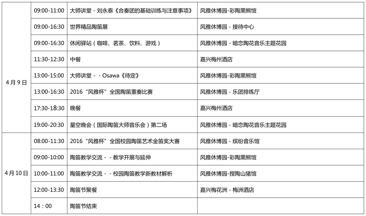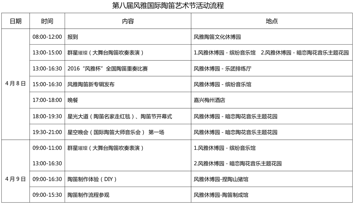第八屆風(fēng)雅國(guó)際陶笛藝術(shù)節(jié)活動(dòng)流程