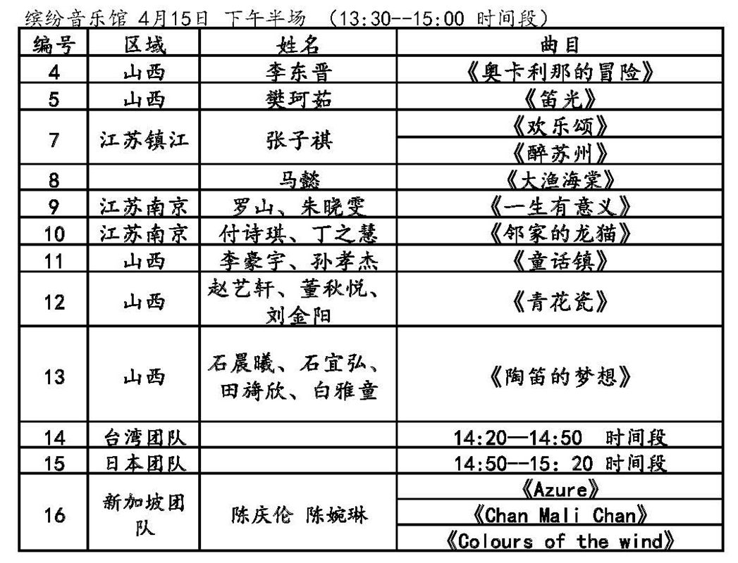 4月15日表演節(jié)目單及時間
